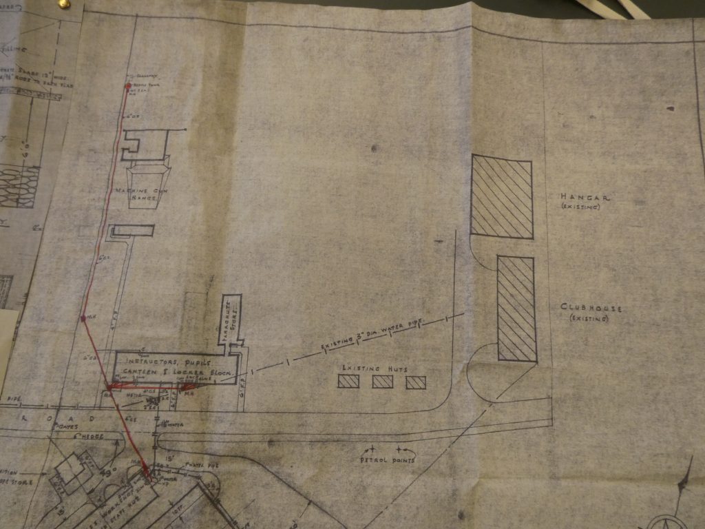 There’s the Instructors and pupils canteen, a parachute store, a machine gun range(!), three existing huts bordering Tollerton Lane, a clubhouse and a hangar (on the wrong side of the lane from the airfield).